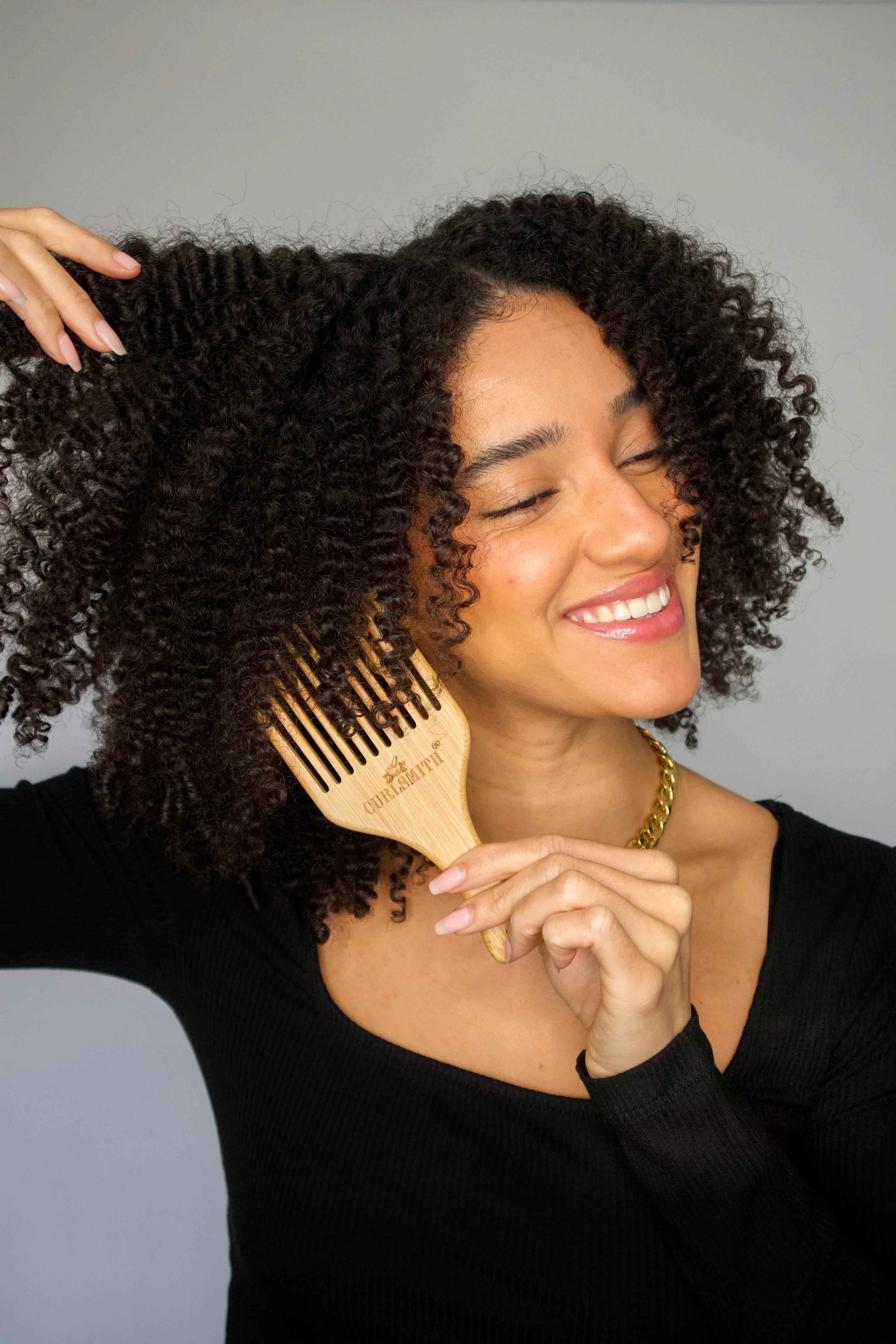 A bamboo pick is great for detangling, teasing, or adding volume to your curls, waves, or coils.